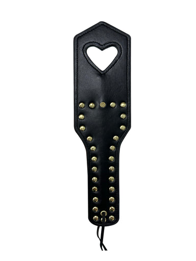 Add a playful edge to your bedroom adventures with this premium faux leather spanker, featuring bold studs and heart detail. Package: Flat Pack Siz...